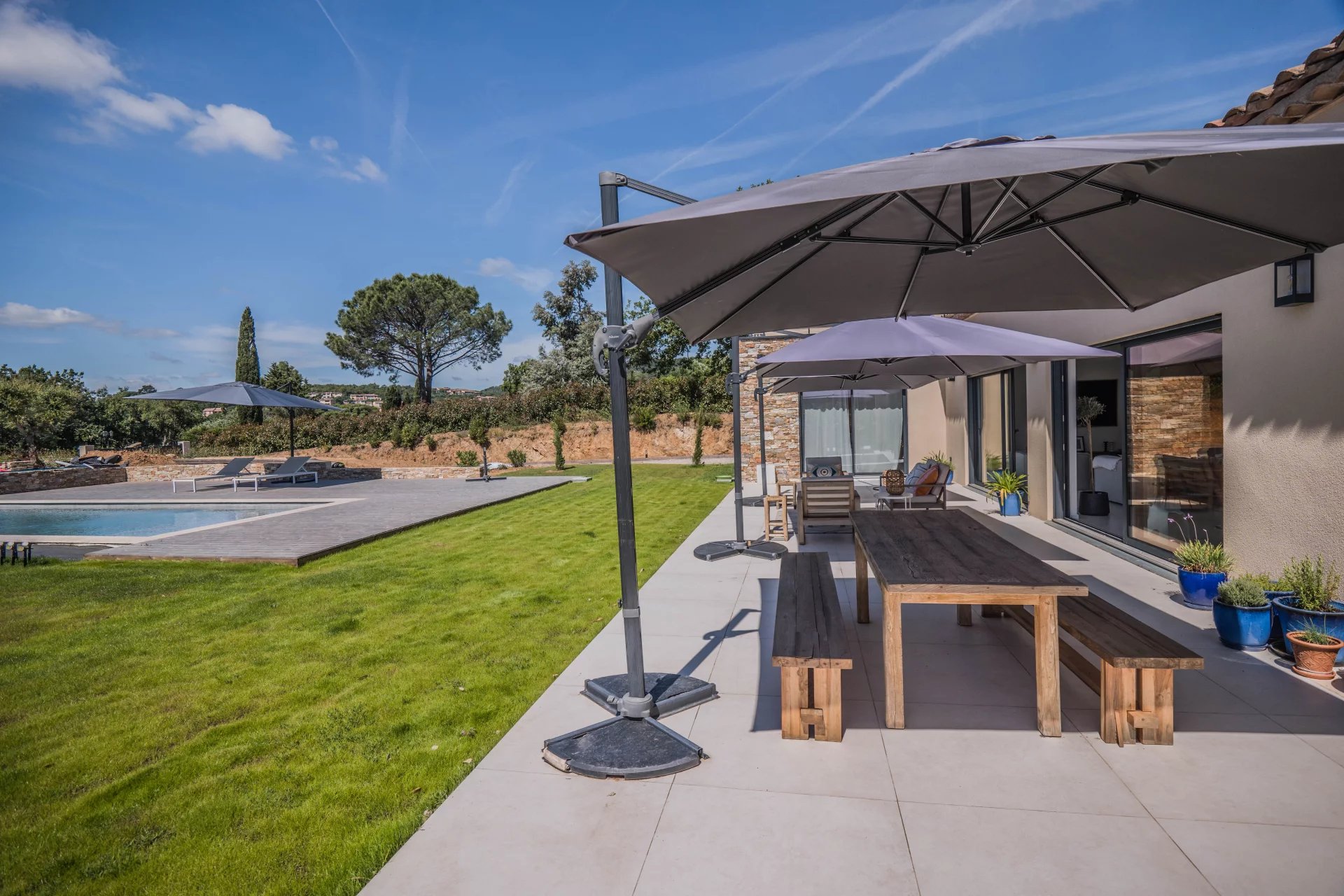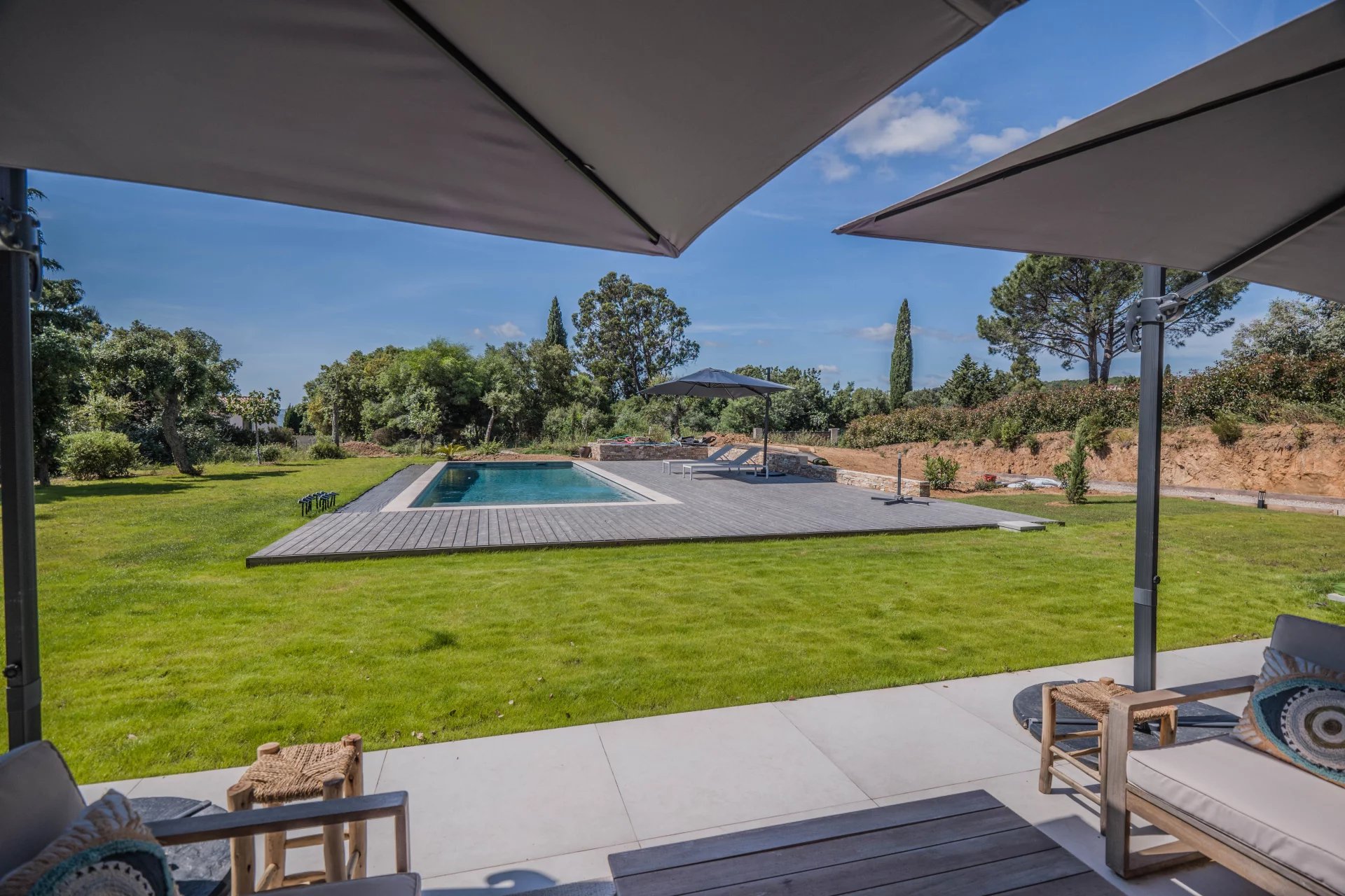 Just a short walk from the beach and close to Port-Grimaud, this new villa is set in a quiet, highly sought-after area. South-facing, you'll enjoy the bright living room with its fitted kitchen opening onto large terraces and the flat garden area. On this level, you'll find 3 en suite bedrooms, including a master with bathroom, shower and dressing room.