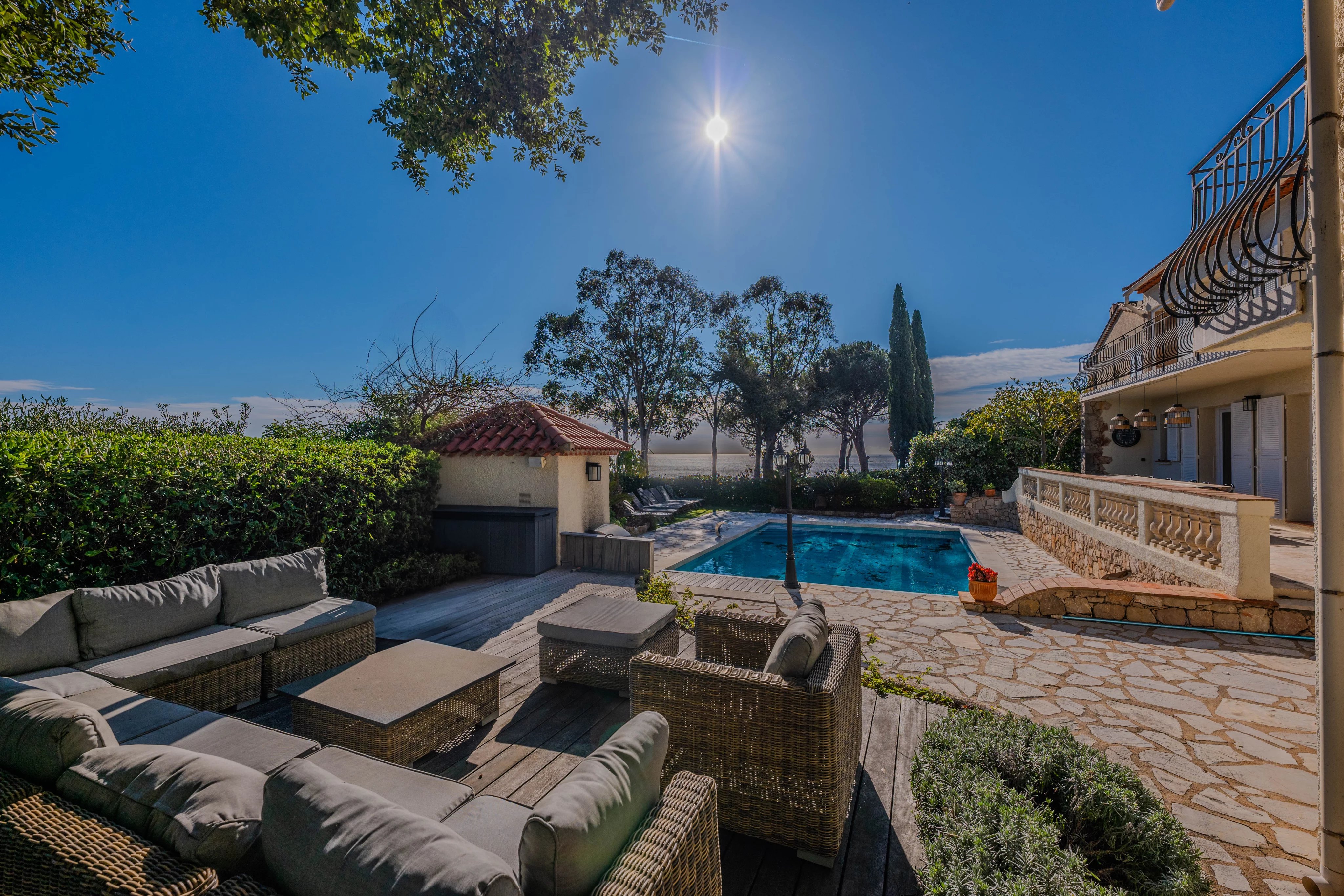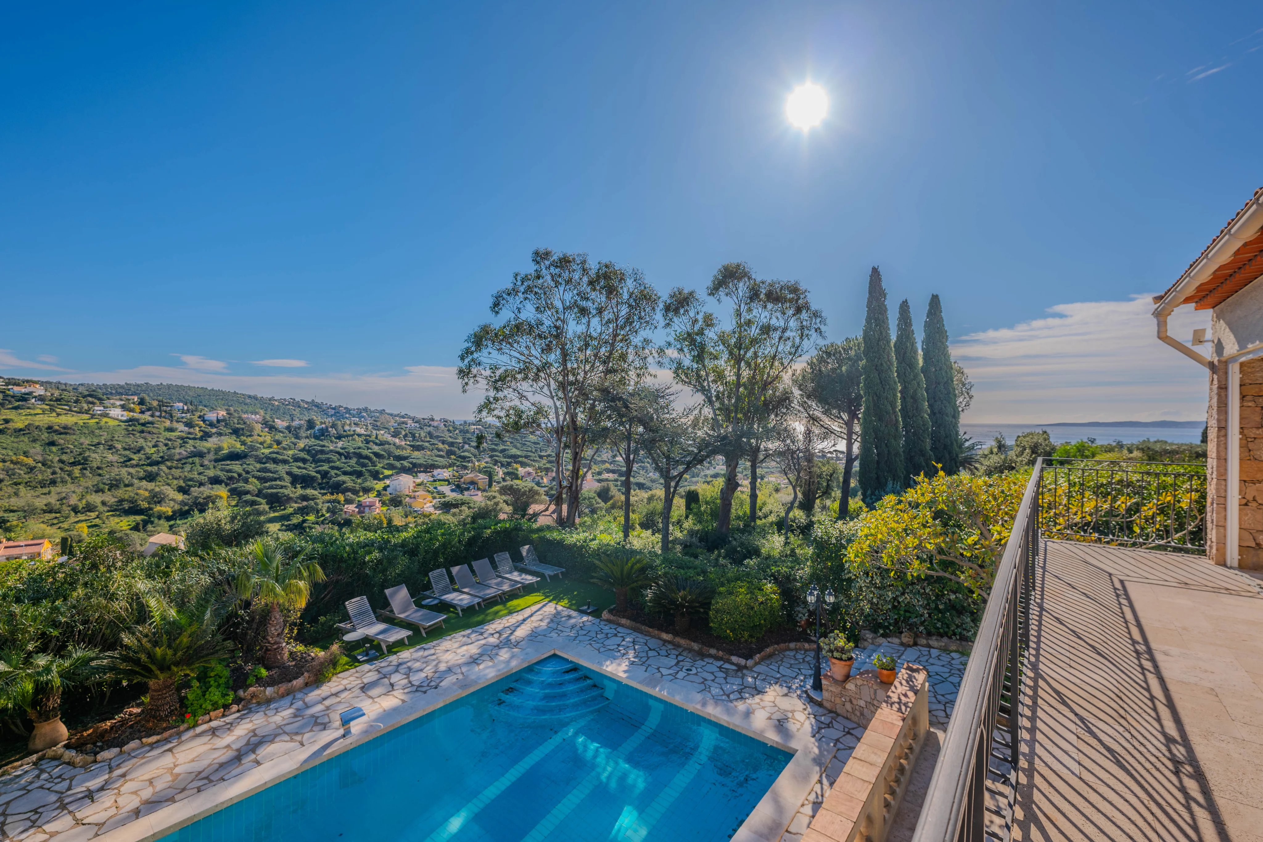 It comprises 6 bedrooms, 4 bathrooms and a large, bright living room opening onto the terrace.