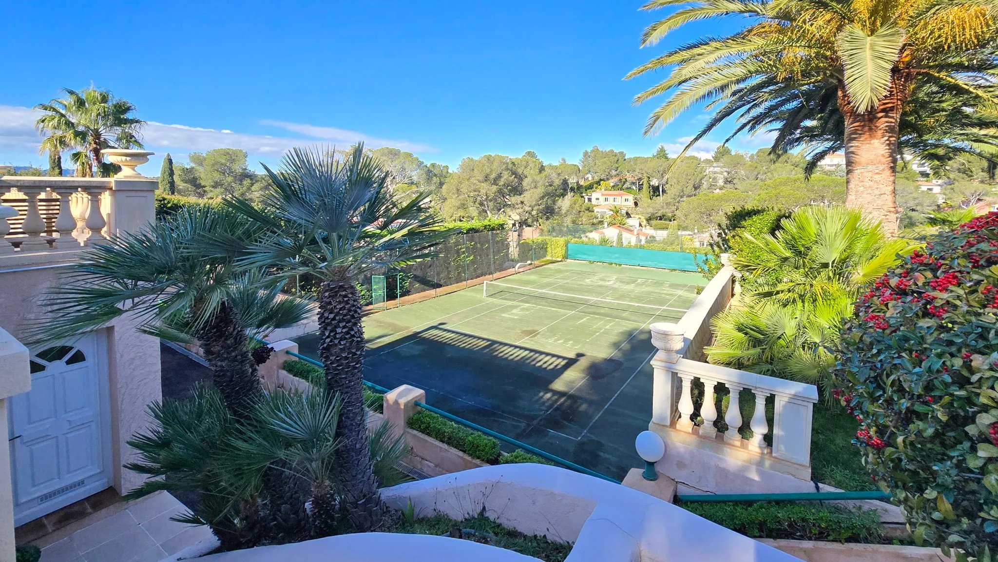 Set within a magnificent 3,500 sq m landscaped garden, the property impresses with its generous outdoor spaces and amenities: large sun-drenched terraces, a private tennis court, a fountain, a pétanque area, and expansive relaxation areas, all within a preserved green setting.