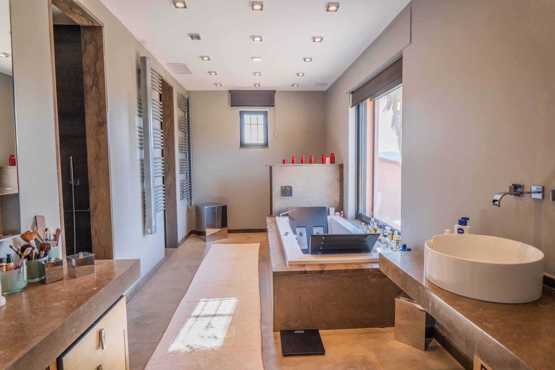 La villa comprend 5 chambres en suite, chacune avec salle de bain, ainsi qu'un appartement indépendant parfait pour les invités. Un cadre de vie alliant luxe, confort et proximité des commodités locales.