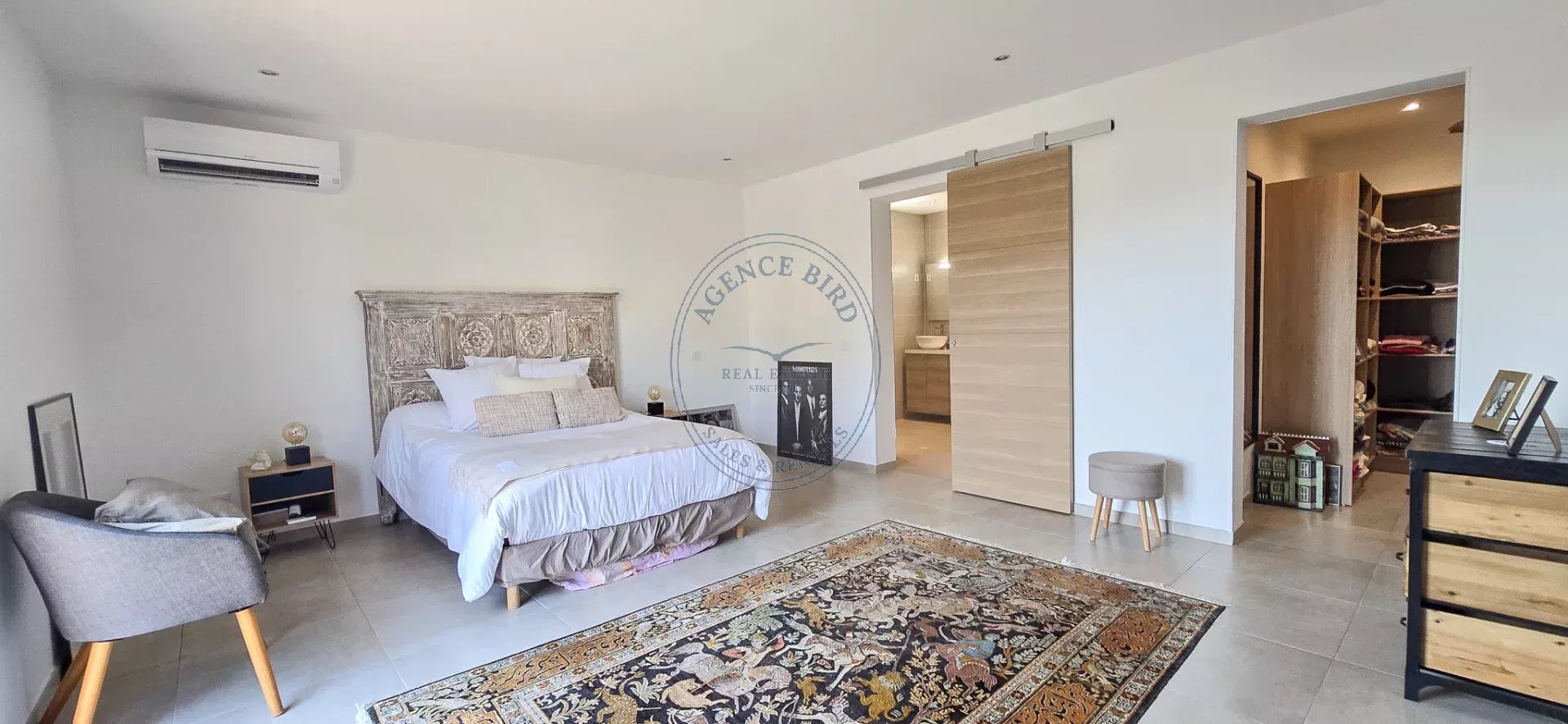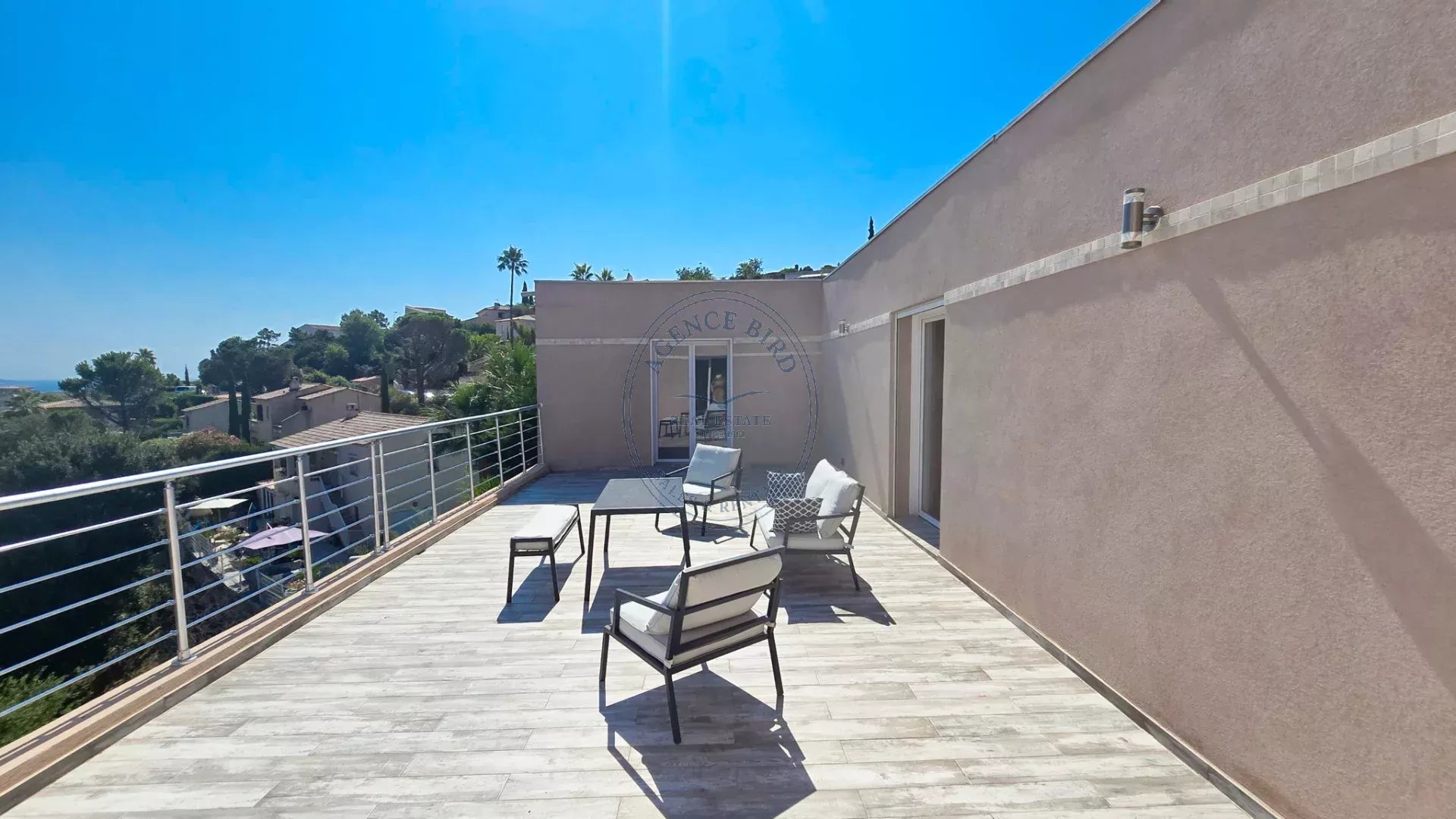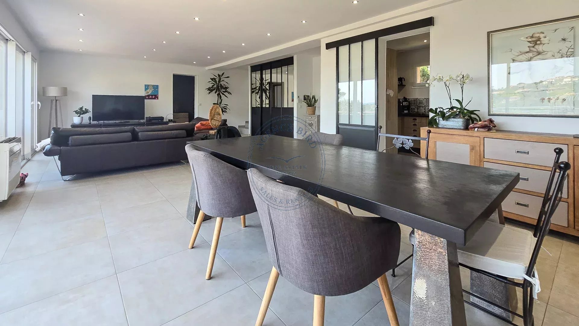 Les Issambres, situation calme, vue dégagée jusqu'à la mer, découvrez cette villa contemporaine récente et climatisée, de 210m offrant des volumes clairs et spacieux, matériaux de qualité et finitions soignées. Séjour ouvrant sur une terrasse surplombant la piscine, cuisine séparée équipée, suite parentale de 41 m² avec dressing, salle de bains. A l'étage deux suites de 40 m² avec dressing et salle d'eau, toilette. Garage de 36 m². Piscine, terrain de 900m². tout y a été organisé pour un entretien facilité.
