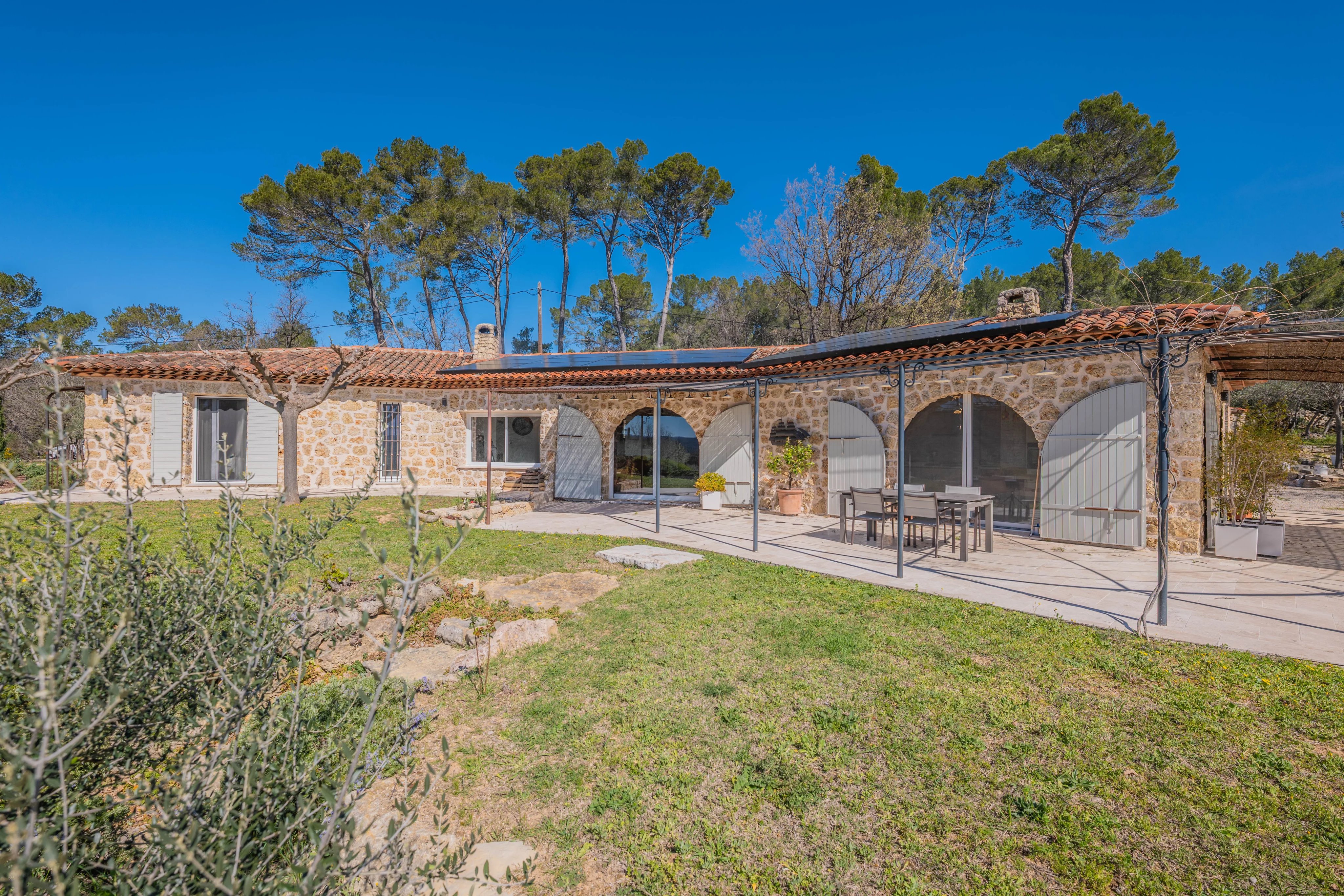 Entièrement repensée en 2021 dans un esprit contemporain, la propriété conjugue lignes actuelles et authenticité intemporelle. La pierre, le chêne et le travertin, choisis pour leur noblesse, dialoguent harmonieusement avec des prestations modernes pour créer une atmosphère à la fois chaleureuse et raffinée. Le terrain de 1,5 hectare, en grande partie clôturé, accueille une oliveraie de plus d’une centaine d’arbres, produisant chaque année jusqu’à 150 litres d’huile d’olive biologique. Les larges restanques en pierre, témoins du passé, structurent le jardin et offrent un décor rare, entre douceur méditerranéenne et intimité absolue, ouvert sur un panorama d’exception.